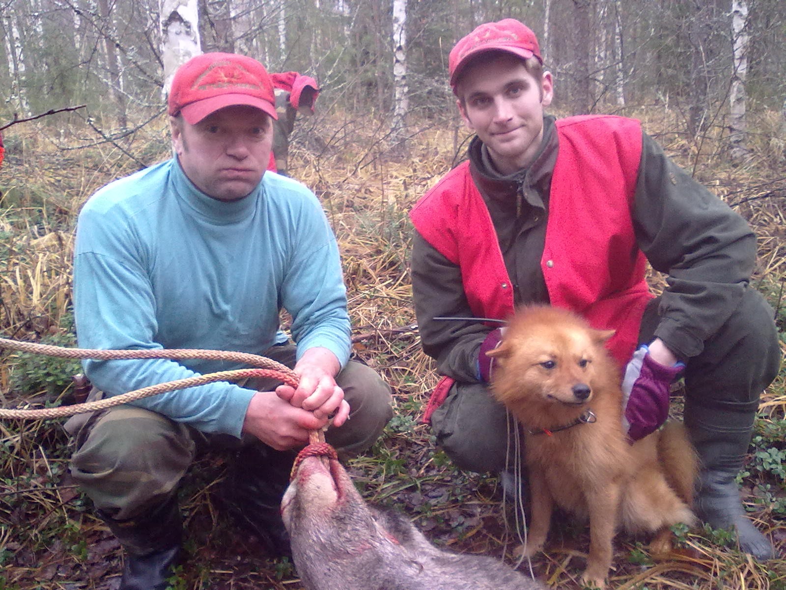 Kari Pölönen, Markus Pölönen ja koira hirvenkaadolla marraskuussa 2012
