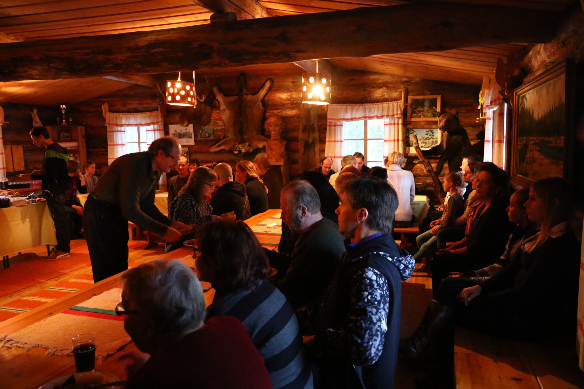 Hirvipeijaiset 2015. Puruskaisen Olli toivotti vieraat tervetulleiksi hirvipaistille.